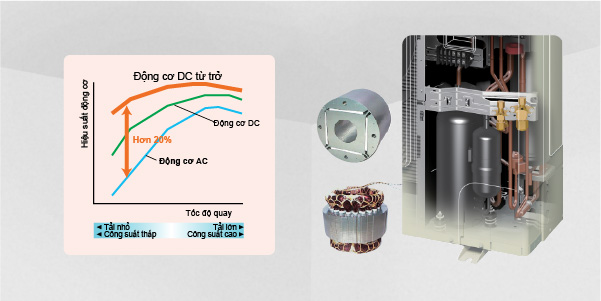 Cần ít điện năng nhưng tạo công suất lớn hơn động cơ AC/DC truyền thống